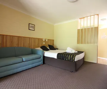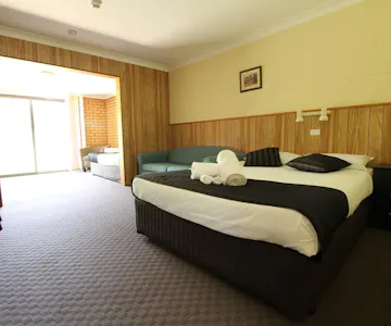 This room features a queen bed, ensuite bathroom, patio overlooking park, flat-screen TV, tea/coffee making facilities, bar fridge, heating and hairdryers. Please note that the price is based on 2 guests. There is no capacity for additional guests.